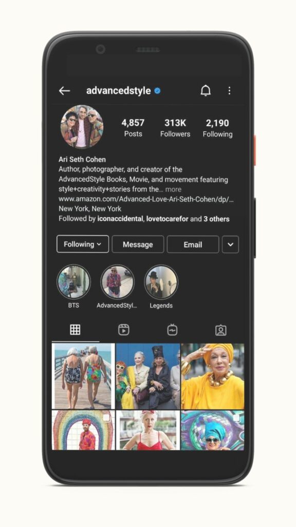 He encourages seniors to share their energy and experiences lives online, just like two of his book models and Instagram favourites, @saramaijewels and @lesleyhasmanyhats. To have an online presence, you need authenticity and originality, along with “having a point of view and connecting with your audience in a way that creates a conversation beyond just style.”